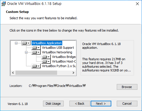 다운받은 VirtualBox Installer를 실행시켜서 설치를 진행해준다.