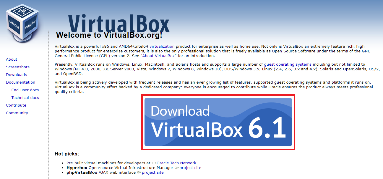 구글에 VirtualBox 검색하면 최상단에 뜨는 항목을 클릭하면 된다
