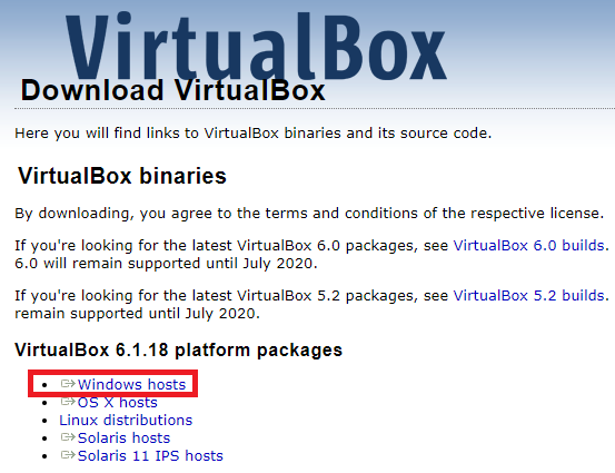 먼저 설치를 진행하기위해 virtualBox 다운로드 사이트로 들어간다