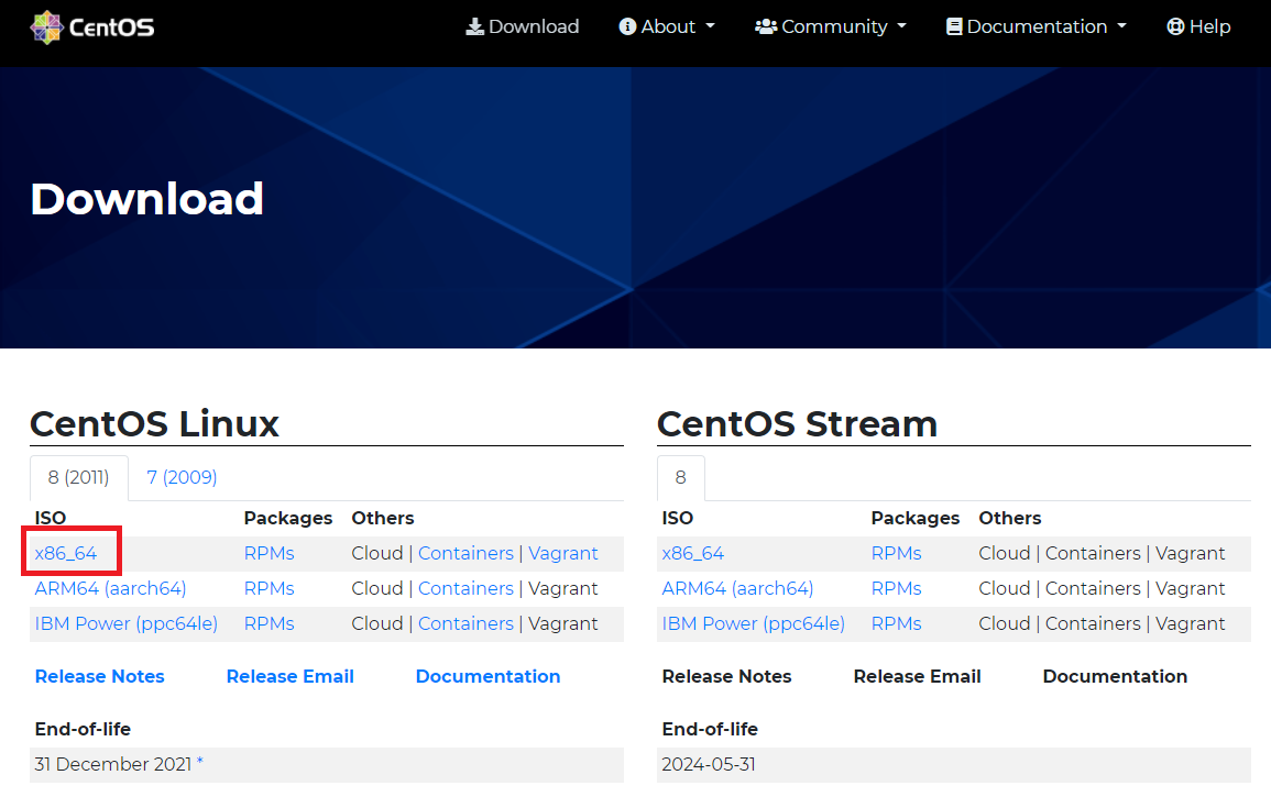 다운로드 페이지로 들어가면 CentOs Linux와 CentOS Stream을 다운로드 할 수 있는 사이트가 뜬다.