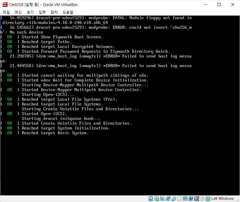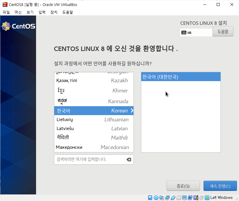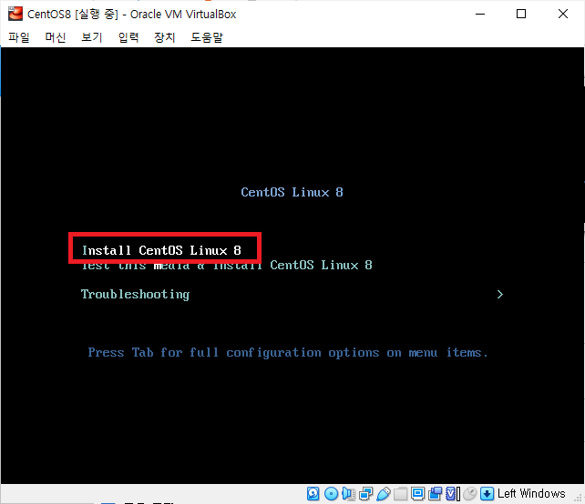 실행시킨 후 첫번째 항목의 Install CentOs Linux 8을 선택해서 설치를 진행한다.