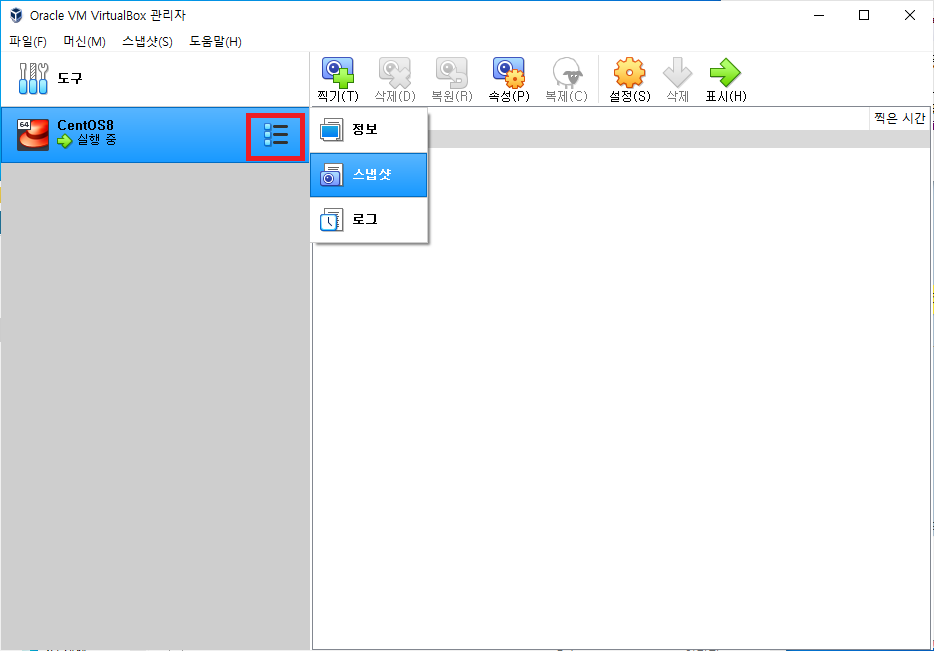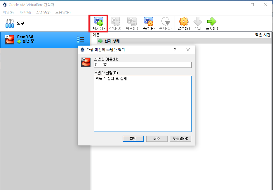 설치 후 초기 상태에 대한 스냅샷을 찍어놓기로 했다.