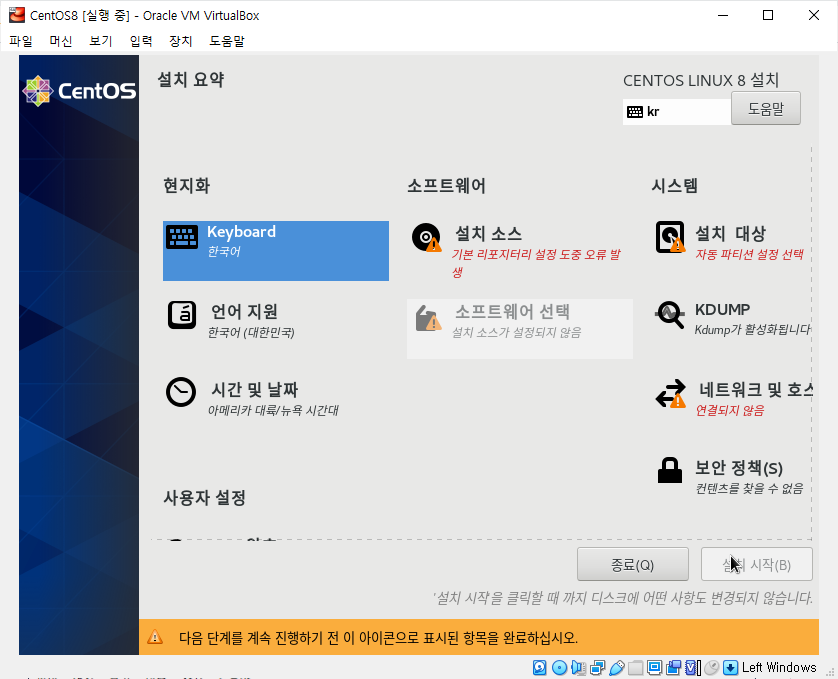 캡쳐 항목 중 소프트웨어 - 설치 소스에서 오류가 발생했는데 처음에 centOS boot 이미지 파일로 받아서 실행했더니 저런 오류가 발생했다..