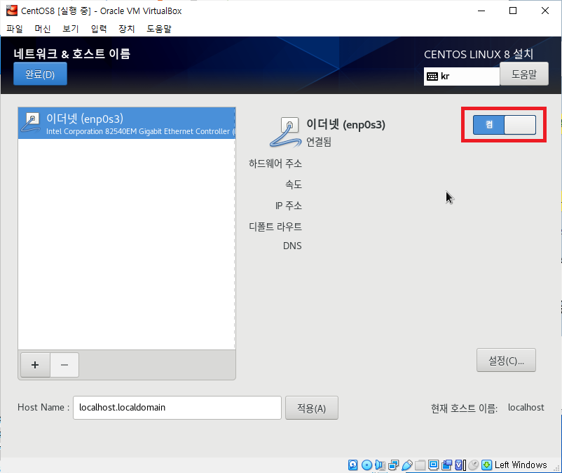 설치 대상도 지정해주고 네트워크도 켬으로 설정해주었다.