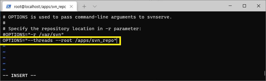 svn 인증 설정을 위해 svnserve.conf 파일을 편집기로 열어준다.