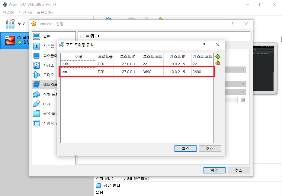 호스트PC에서 해당 svn에 연결하려면 방화벽 설정과 포트포워딩 설정이 필요하다.