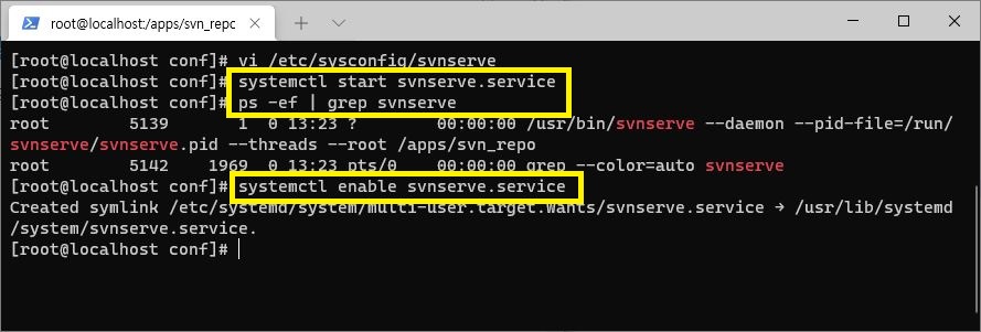 svn 서비스 실행을 위한 svn 서버 설정 작업을 진행한다.