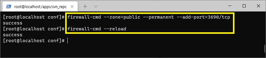 $ firewall-cmd --zone=public --permanent --add-port=3690/tcp