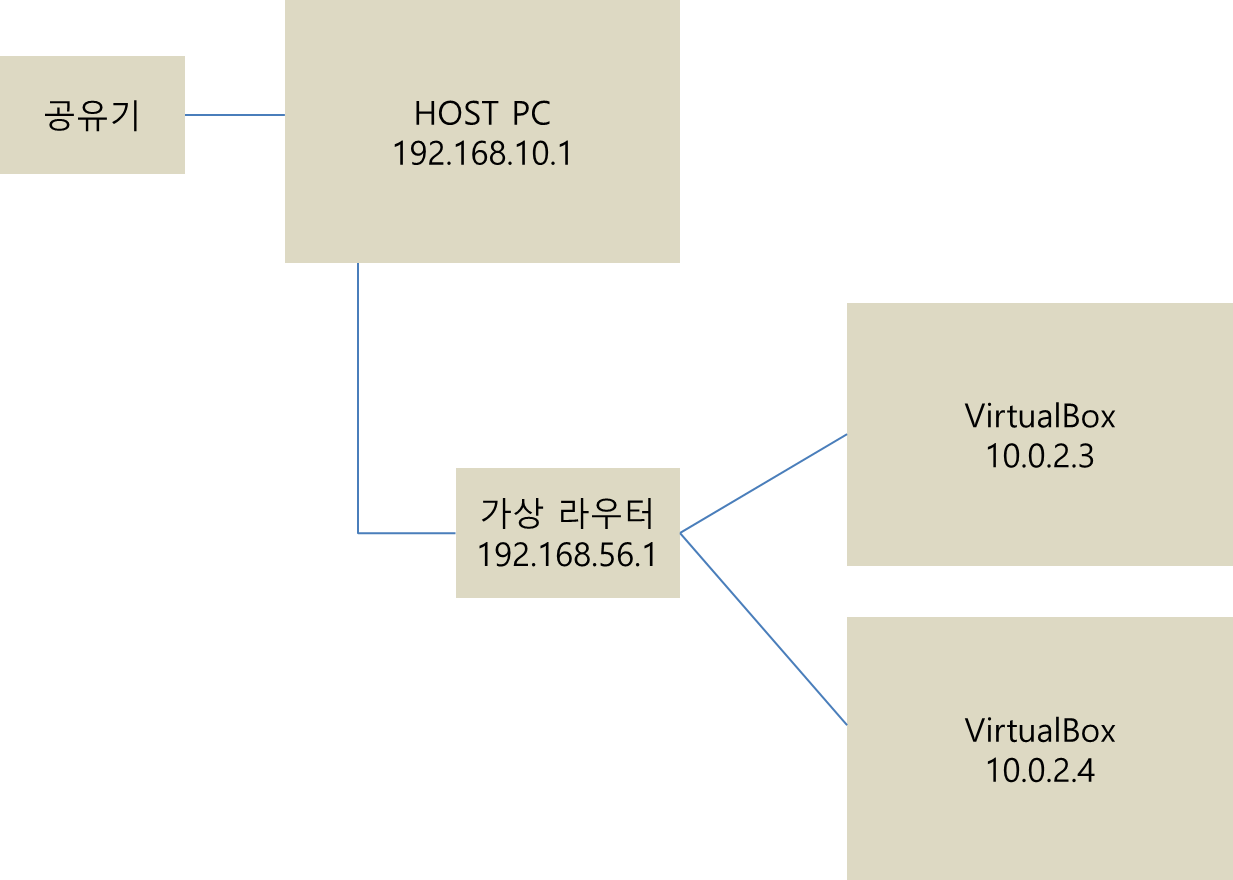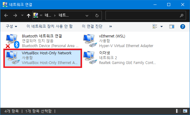 VirtualBox Host-Only Network 드라이버가 가상의 공유기 역할을 해주어 가상머신끼리도 통신이 가능하게 가상 IP 할당