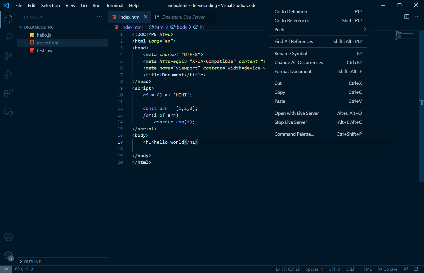 구동하고자 하는 소스 마우스 오른쪽 클릭 후 Open with Live Server를 눌러주면 바로 실행된다!