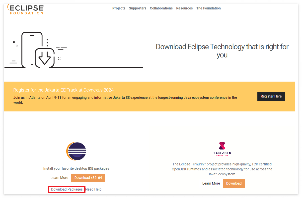이클립스 아이콘 밑에 Download Packages를 클릭한다.