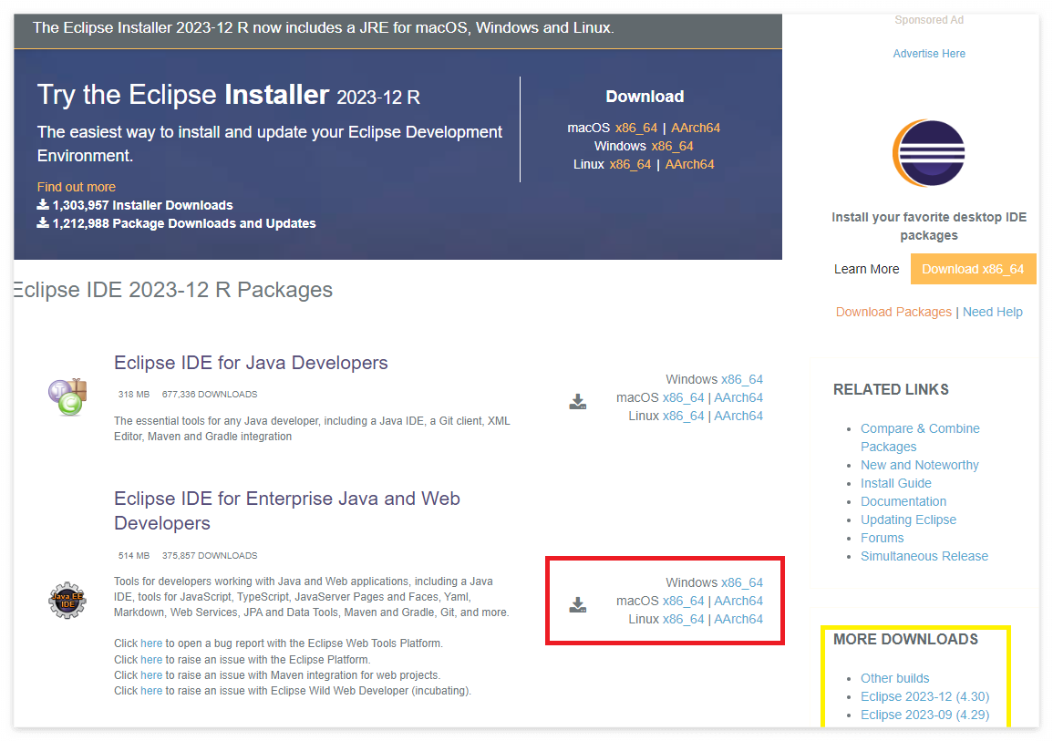 Eclipse IDE for Enterprise Java and Web Developers 에서 본인의 OS에 맞는 다운로드를 클릭한다.