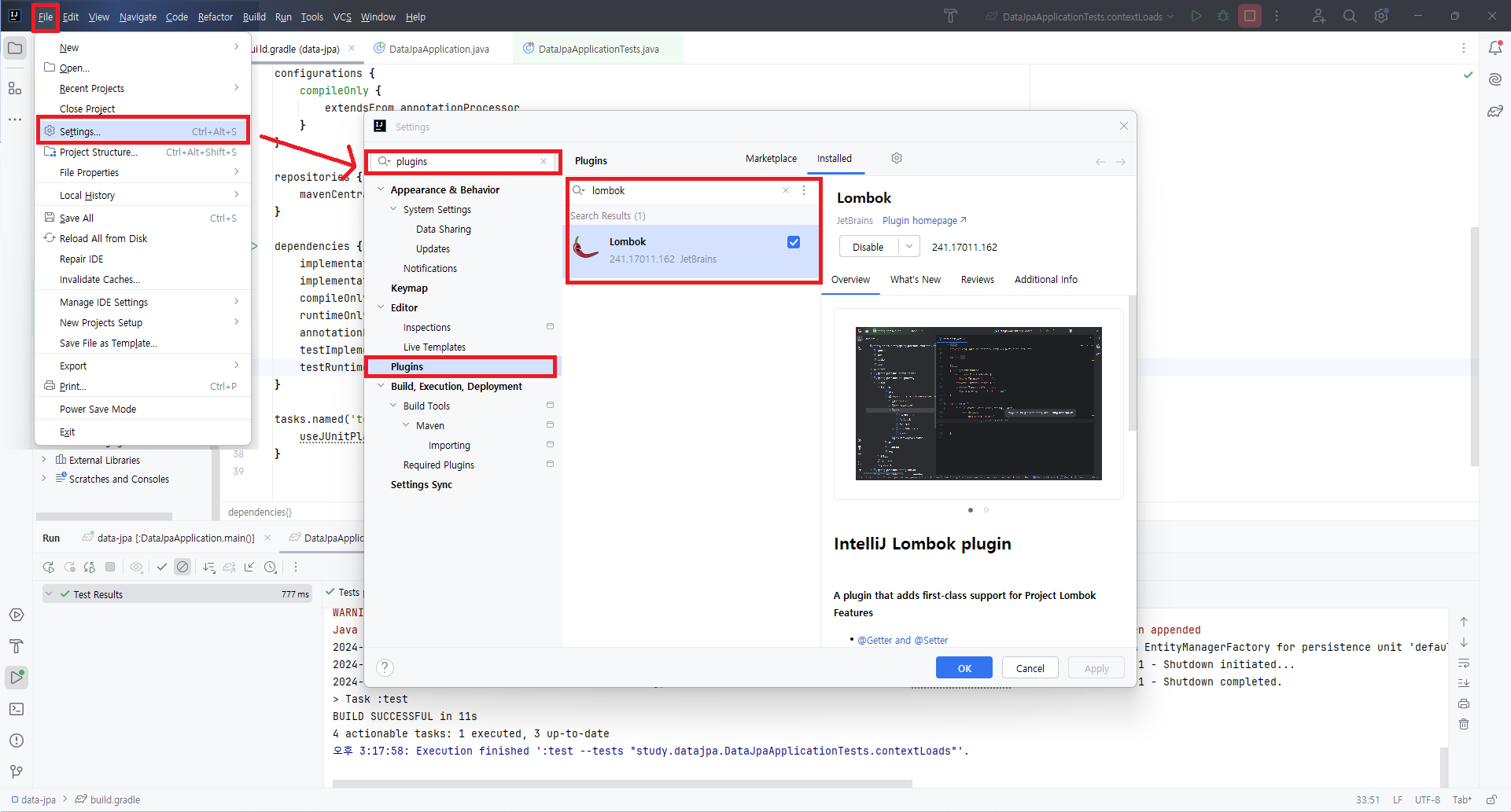 plugins라고 검색하여 Plugins 항목을 선택해준다.