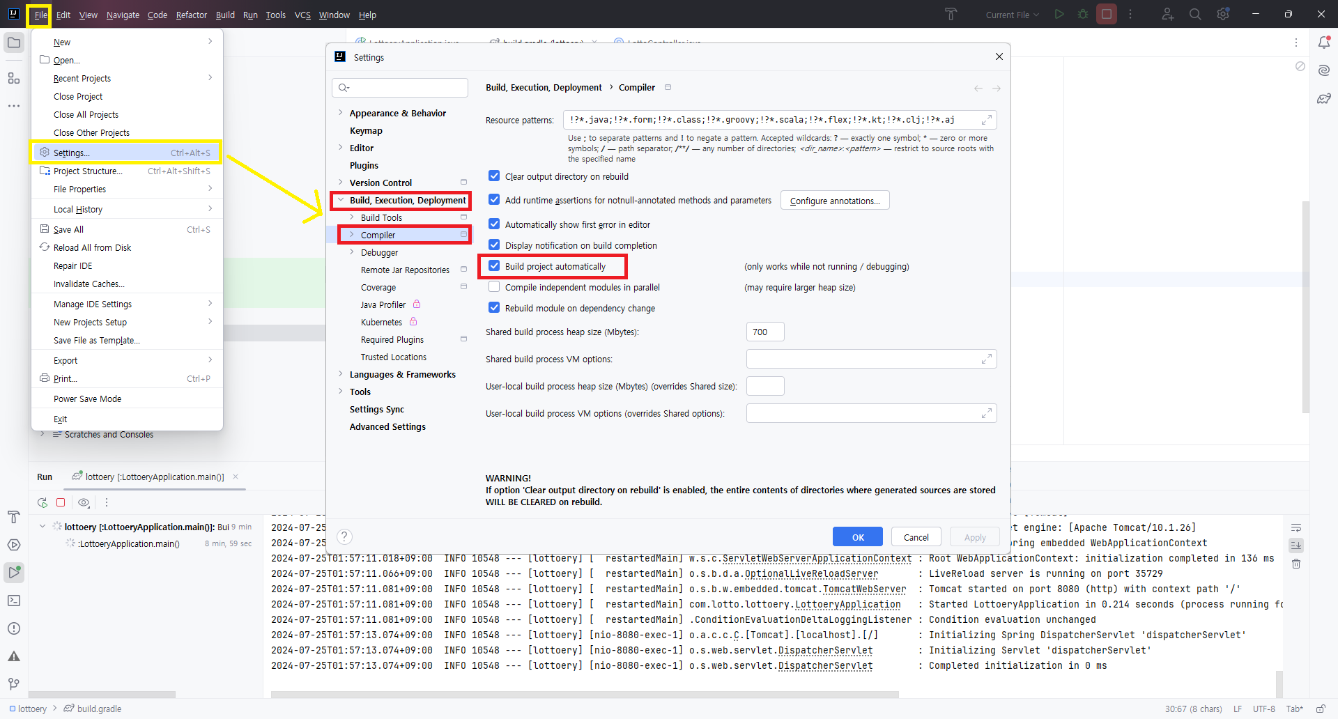 Build, Execution, Deployment > Compiler 항목을 선택한다.