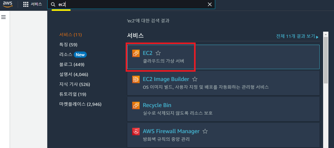먼저 aws 콘솔로 들어가서 ec2 대시보드로 들어간다.