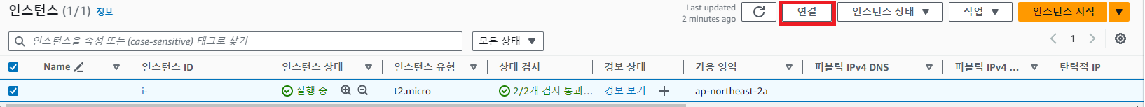 인스턴스를 선택하고 연결 버튼을 누른다.