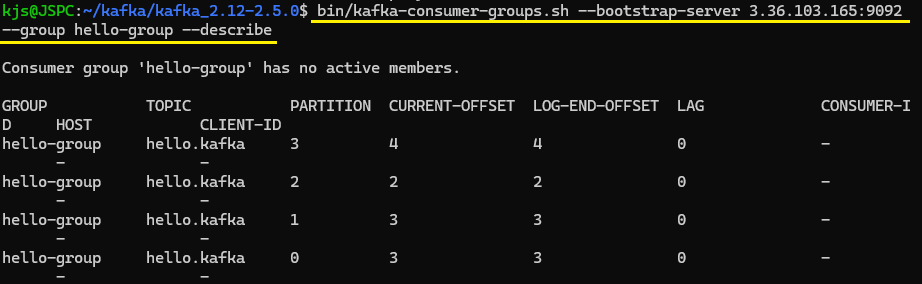 bin/kafka-consumer-groups.sh --bootstrap-server 카프카브로커IP:포트 \