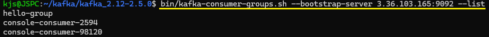 bin/kafka-consumer-groups.sh --bootstrap-server 카프카브로커IP:포트 --list
