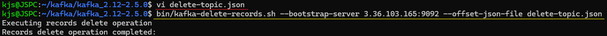 bin/kafka-delete-records.sh --bootstrap-server 카프카브로커IP:포트 --offset-json-file 파일명