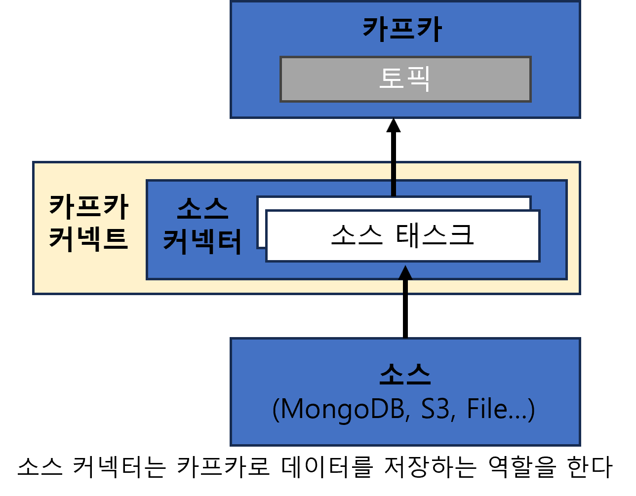 // 예를 들어, mongoDB에서 데이터를 가져와서 토픽으로 저장하는 소스 커텍터라면 MongoDbSourceConnector로 선언할 수 있다.