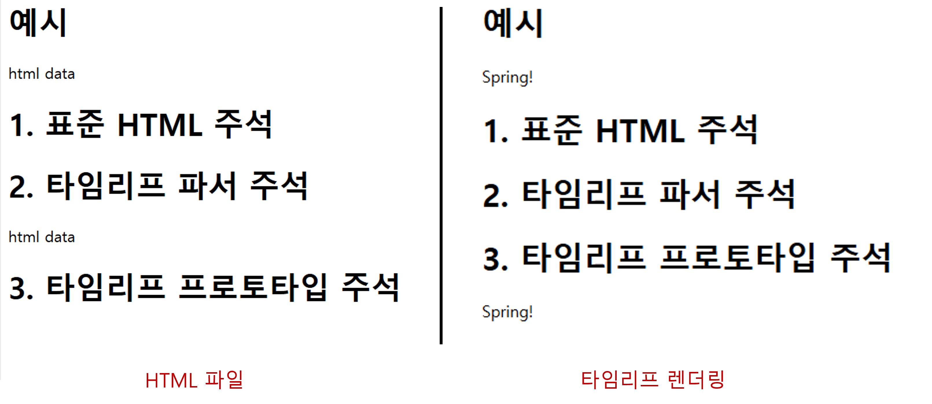 - HTML 파일로 열면 주석처리가 되지만, 타임리프 렌더링할 경우 해당 내용이 보이게된다.