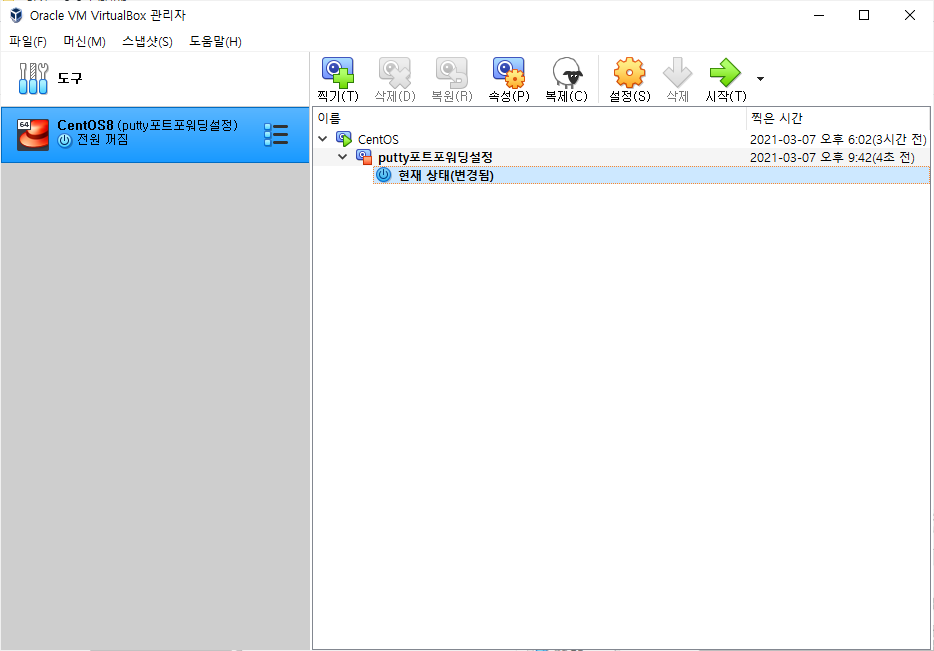 [개발환경구축] VirtualBox CentOS 8 putty 원격 접속